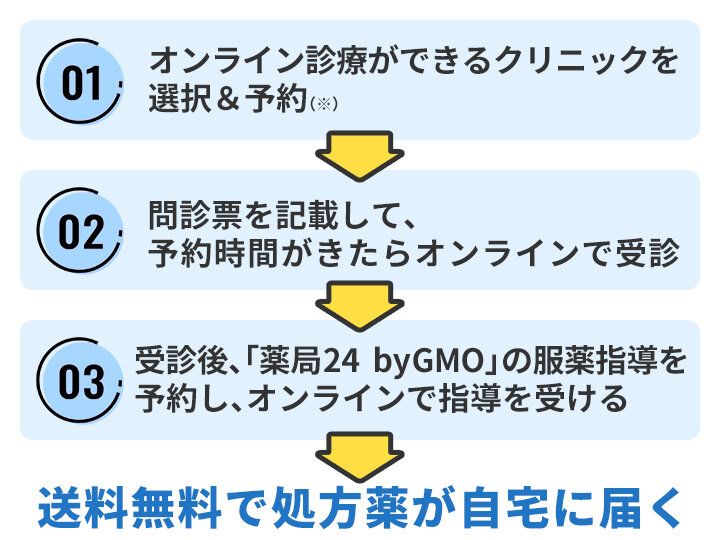 ※オンライン診療では、医師がオンライン診療が適切でないと判断した場合に、対面診療を案内されることがあります。