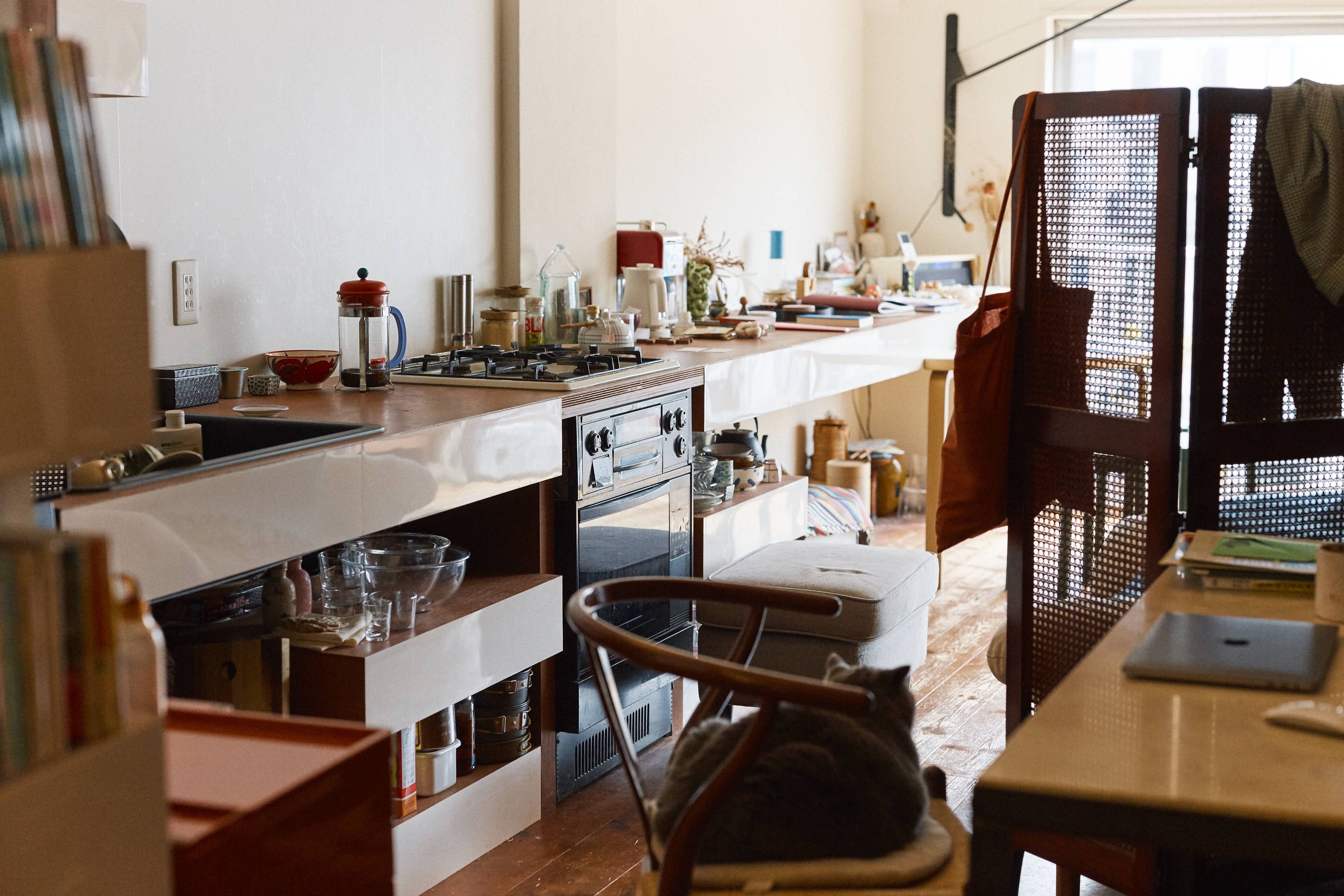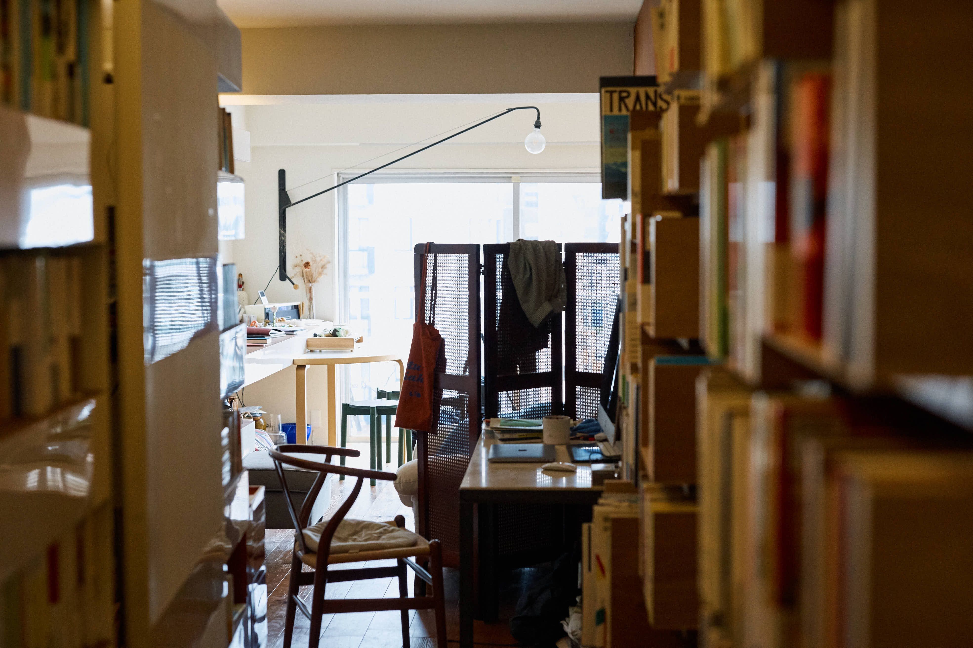 「外部の人が出入り自由で、しかも住みたくなる場所ってなかなか見つからなくて。やっと出逢ったのがここでした」。元は写真家が住んでいたという部屋を、建築士と相談しながらリノベーションして書棚をつくり、キッチンを作り、住まい兼ブックコミュニティにしていきました。