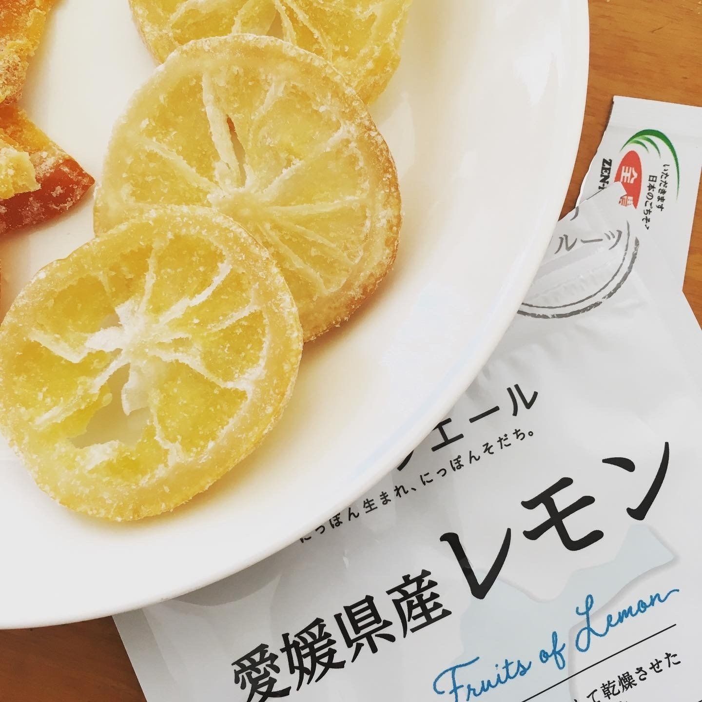 愛媛県産レモンを蜜漬けして、乾燥させてます。