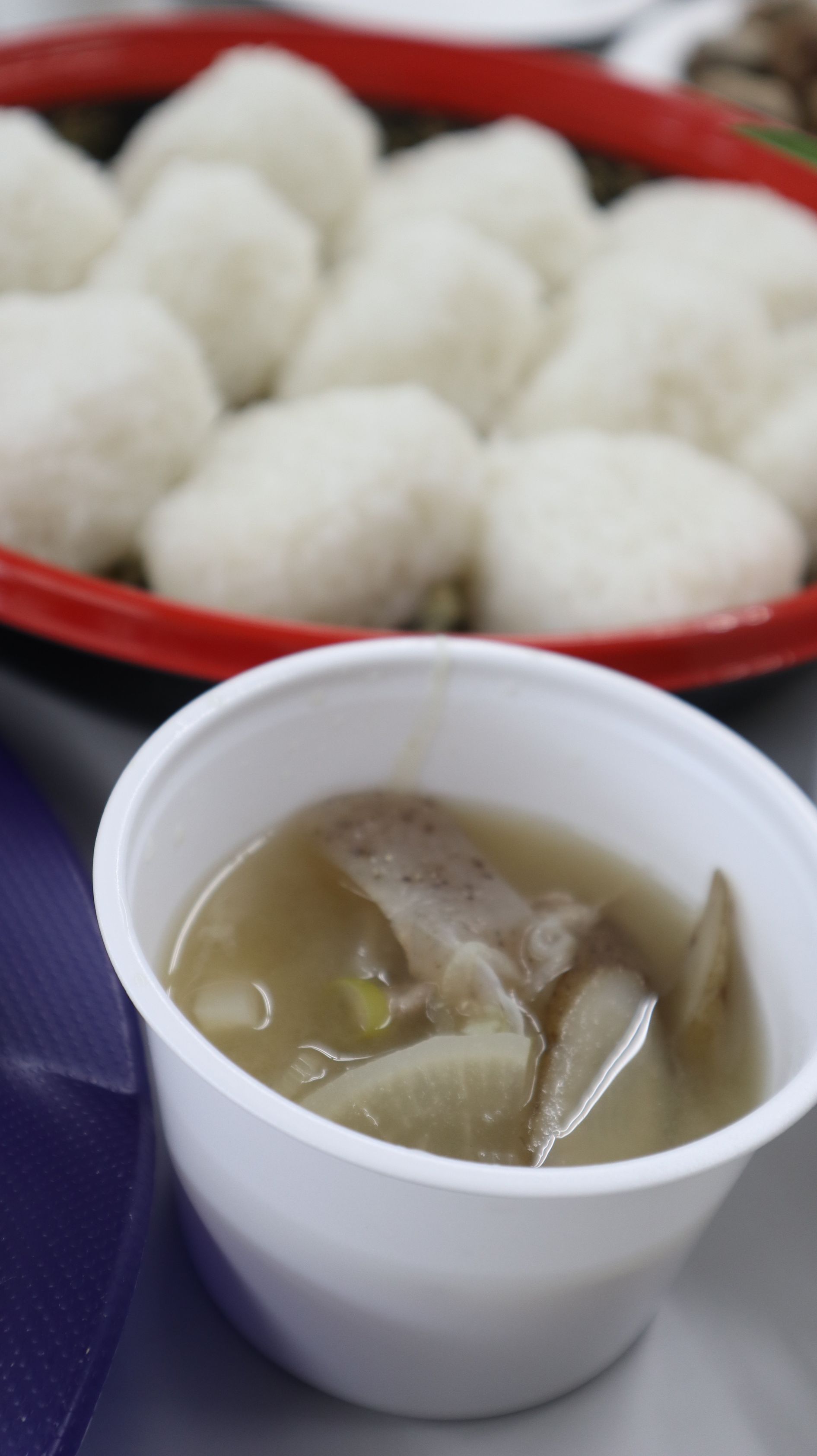 頑張ったご褒美は、婦人部の方が作ってくれたおにぎりと豚汁!