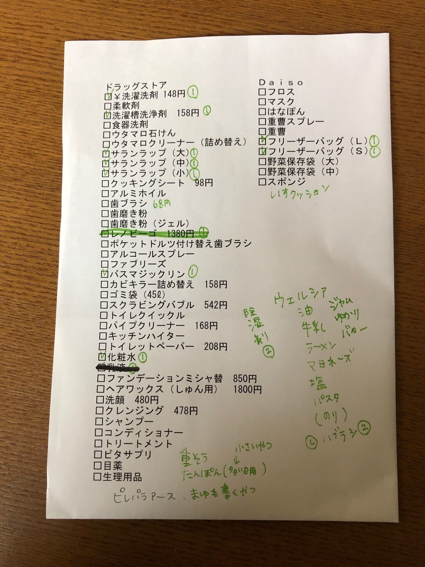 そんなこんなで、出来上がったのがこの日用品リスト。