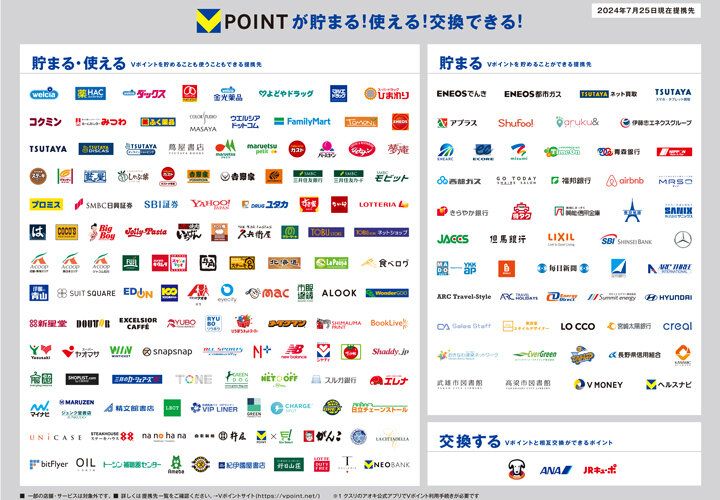 Vポイントは、全国約16万店舗(2024年6月末時点)に拡大したVポイント提携先でこれまでどおり貯めることができ、TカードやモバイルVカードを提示すれば「1ポイント=1円分」で利用できます。さらに、VポイントPayアプリを使えば、国内Visa加盟店750万店舗、世界の1億店舗でも「1ポイント=1円分」として利用できるんです。(※2)