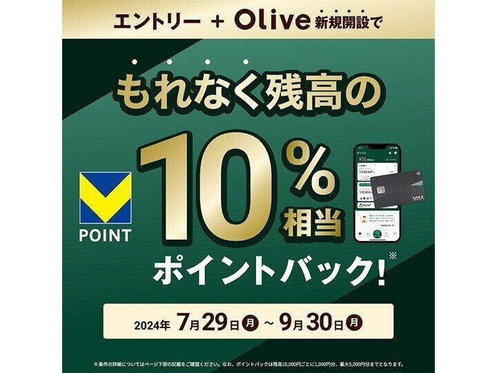さらにキャンペーン中(2024年9月30日まで)に新規開設すると、Olive残高の10%相当のポイント還元(※4)の特典が!