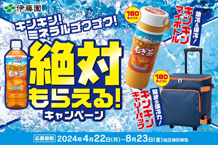 毎年たくさんのご応募をいただいている「絶対もらえる!キャンペーン」を実施中! 今年の合言葉は「キンキン!」