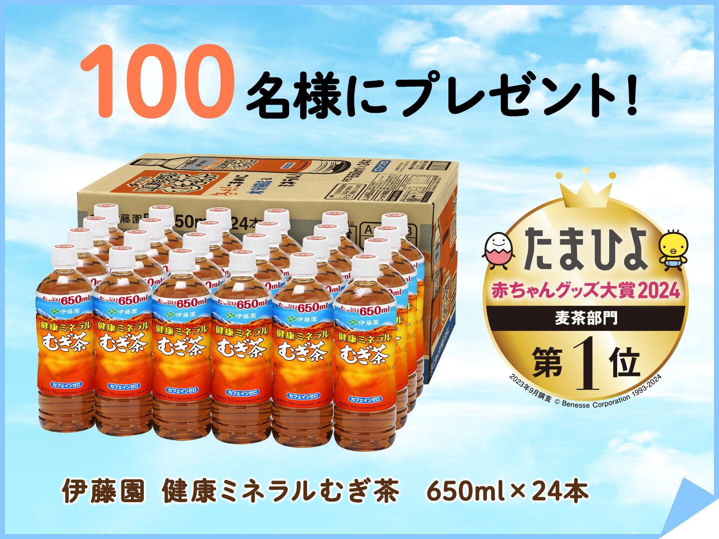 100名様にプレゼント!アンケートに答えて、「健康ミネラルむぎ茶」ペットボトル1ケース(650ml×24本)を当てよう