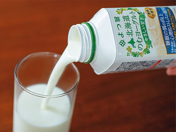 「北海道のむヨーグルト」シリーズの乳原料は、北海道産を100%使用しています。乳成分のバランスにこだわり、ミルクのおいしさや濃厚感をしっかり感じられるとろっとした食感を実現! さらに、素材が持つおいしさをそのまま味わえるよう、香料を使わずに作り上げられているのも特徴です