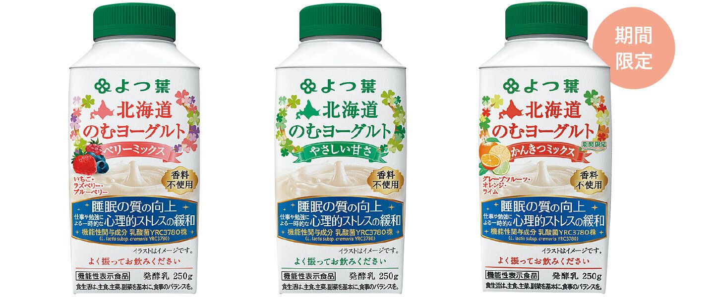 「北海道のむヨーグルト」に配合されている「乳酸菌YRC3780株」は、仕事や勉強による一時的な心理的ストレスを和らげる機能や睡眠の質を高める機能があることが、北海道大学との共同研究により報告されています。