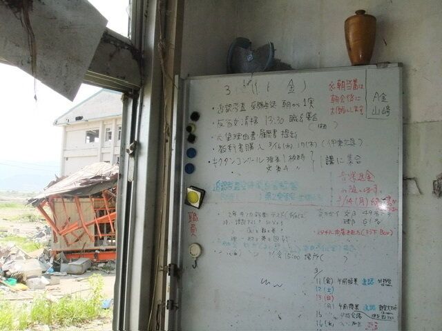 震災後の5月に母校を訪問した際も、時計は、津波が押し寄せた時刻、15:30をさしていました・・・。