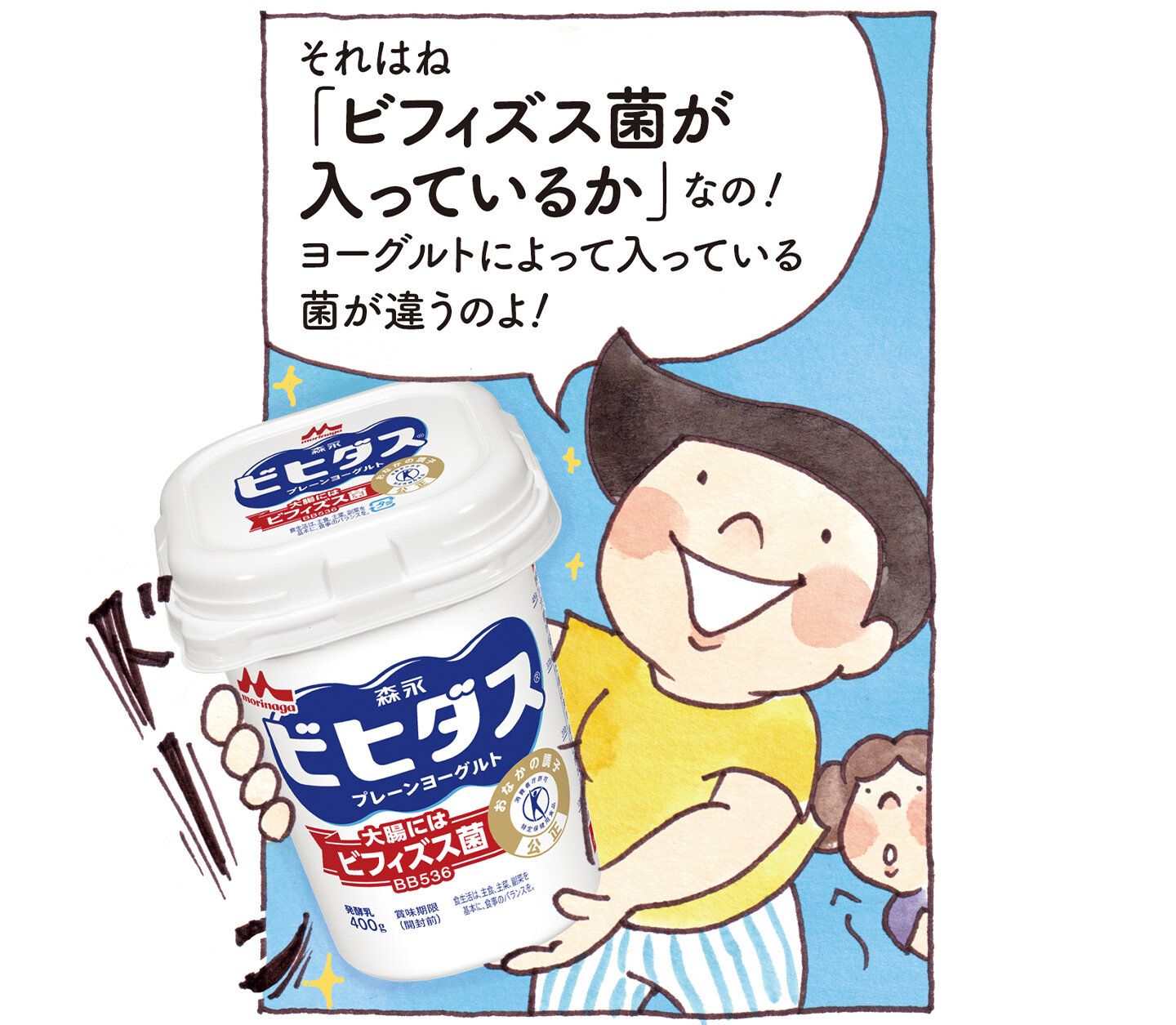 ●許可表示:このヨ-グルトは生きたビフィズス菌(ビフィドバクテリウム·ロンガムBB536)を含んでいますので、腸内のビフィズス菌が増え、腸内環境を良好にし、おなかの調子を整えます。