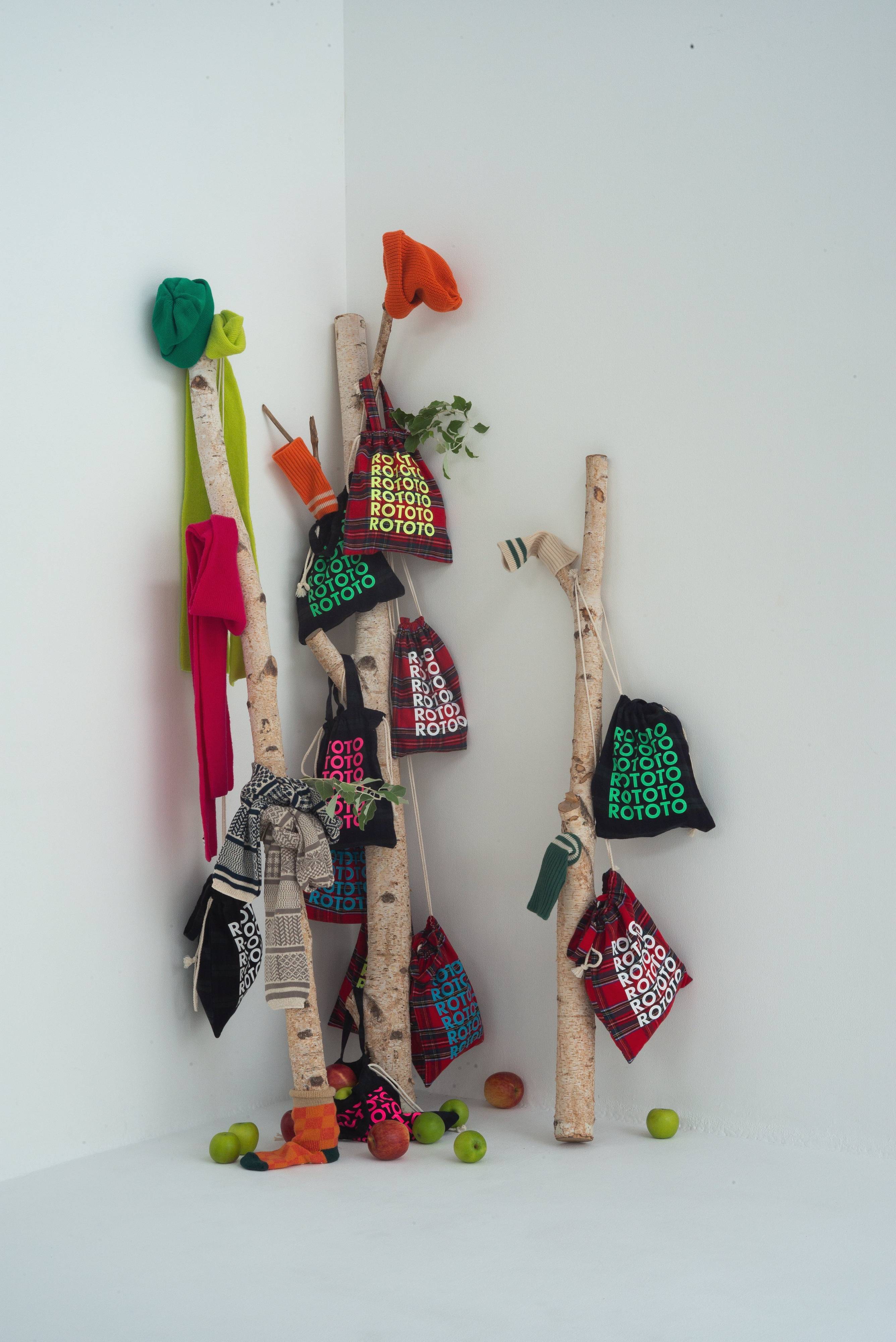 (写真左)渋谷パルコで期間内限定で購入できるギフトバッグ。包むバックも可愛いもので盛り上げたい。プリントのカラーは、ベーシックなホワイトからネオンカラーまで全6種類。ROTOTO GIFT BAG “TARTAN CHECK” /¥2,970