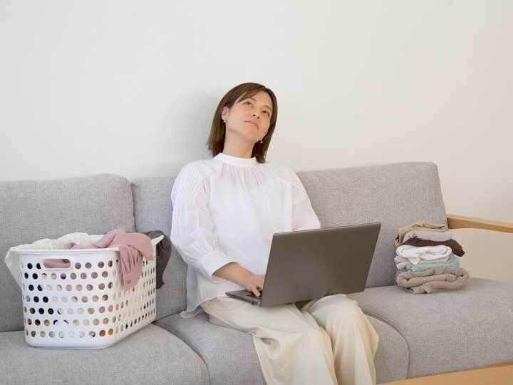 洗濯物を取り込みながら仕事メールに対応。家事も仕事もストレスも溜まる。