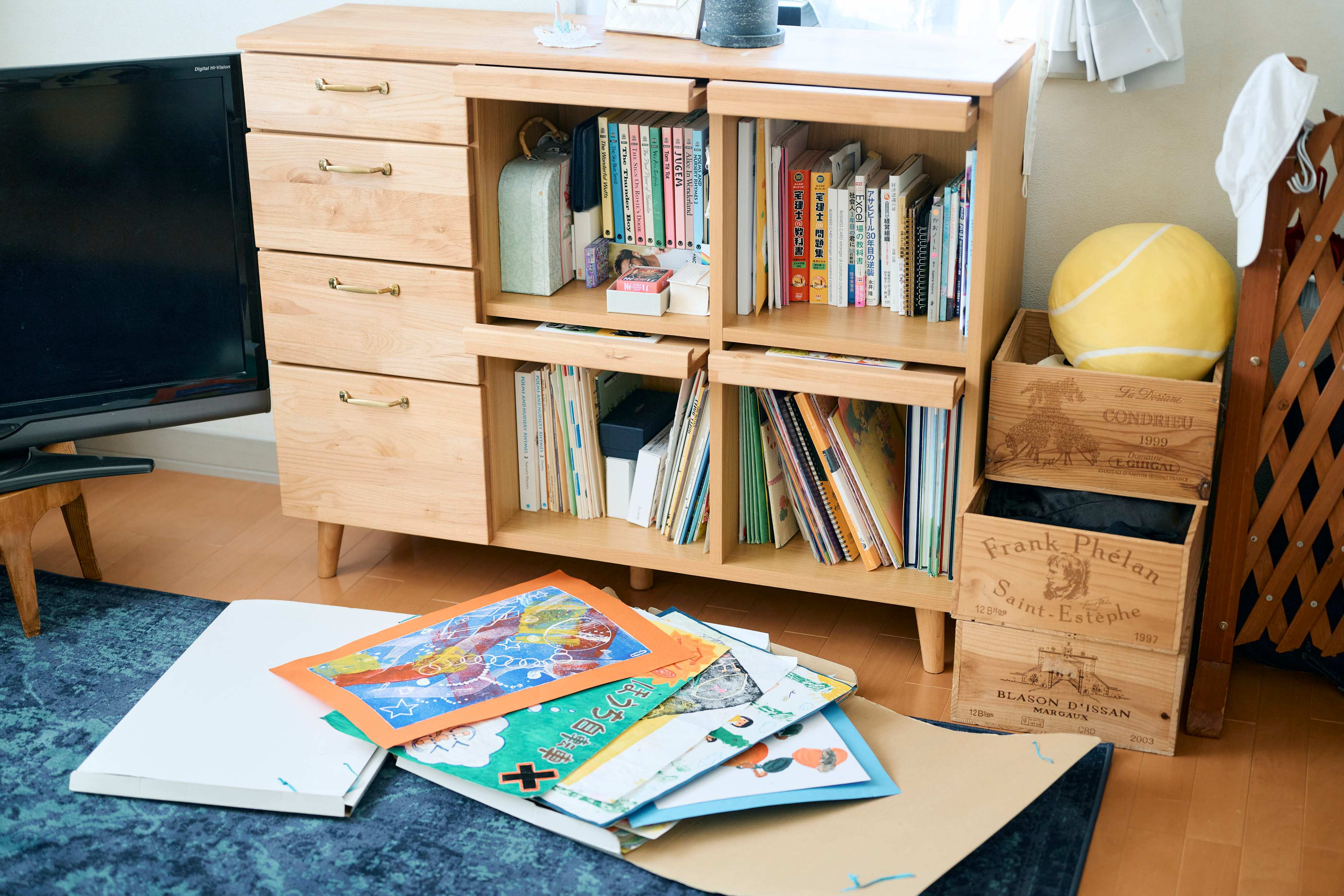 「うちでは年に一度、年末に持ち物の整理を家族みんなにしてもらっています。子どもたちにも自分のものは自分で管理してもらい、もういいかな、と自分で思ったものは処分してきました。ただ、絵などは、どちらかというと私がとっておきたかったのかな?というものも。褒められたものなどは捨てがたくて。でも、もうそれも卒業なのかな。写真に撮って処分しようと思っているところです」