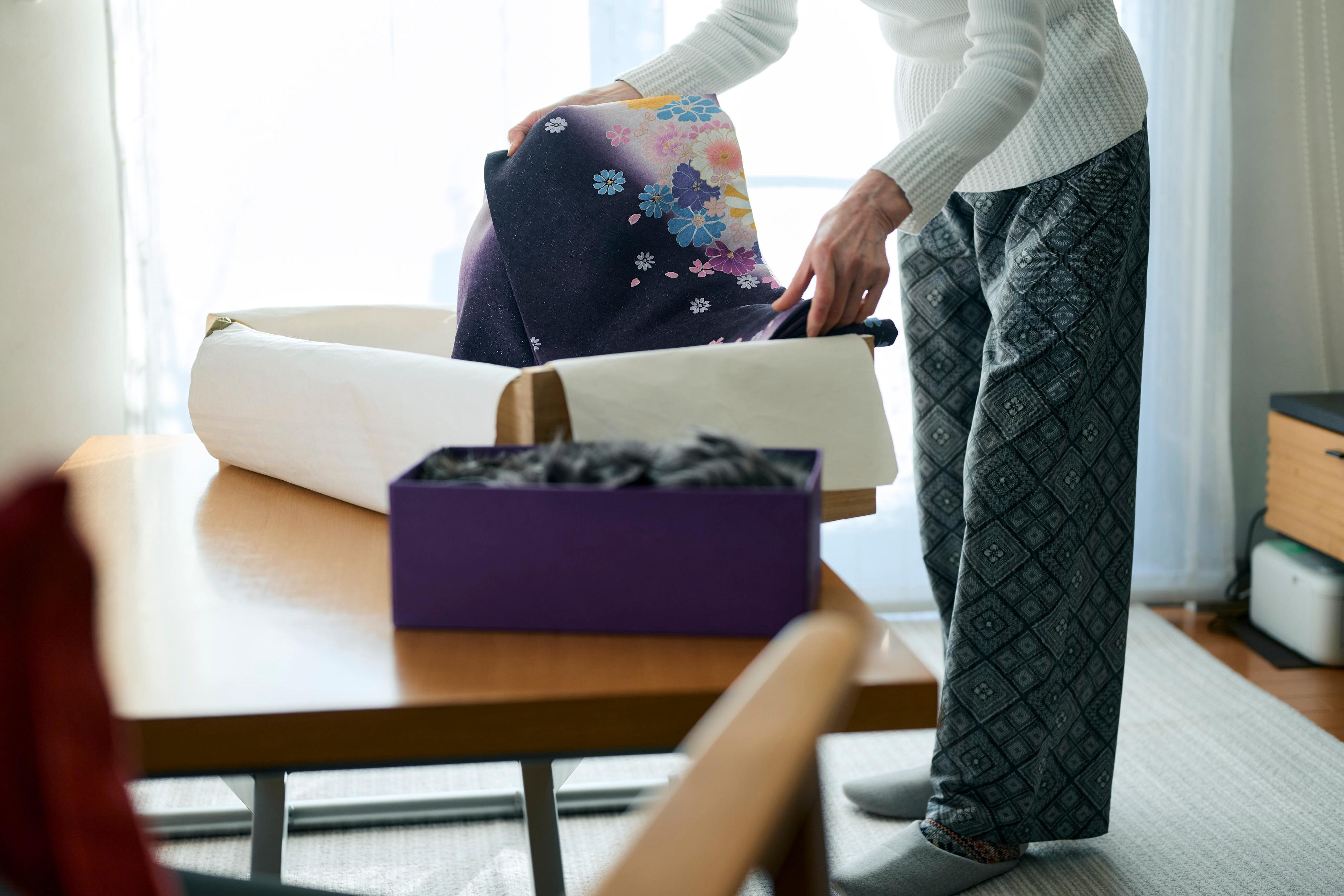 「一度査定に出してみたんです。そしたら、ほとんど値がつかなかったんですね。それで持ち主の母もあまり価値がないと納得して、手放してくれるようになりました。着物は売るのではなく、親戚や友人にもらってもらったり、好みのものや思い出のものは、裁縫の得意な友人にお願いして洋服に仕立てなおしたりしました」