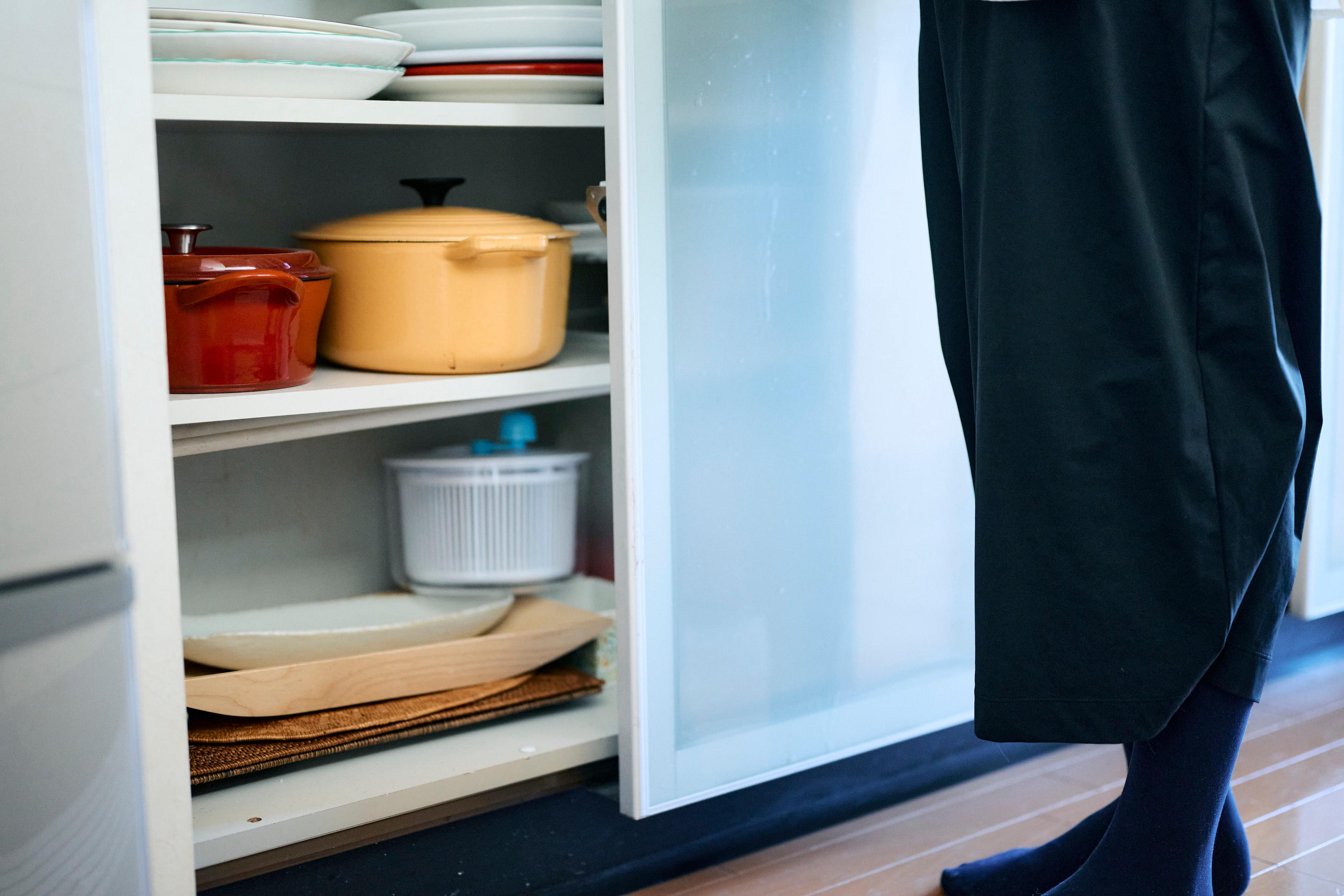 水やビールの買い置きを2階まで持って行くのをやめて、床下収納に入れたり、ル・クルーゼなどの鉄鍋も食器棚の上段に置いていたのを下の段に移動しました。