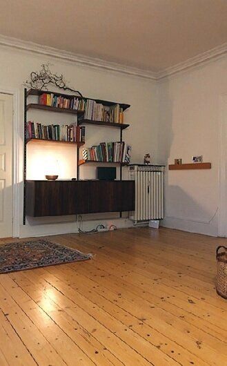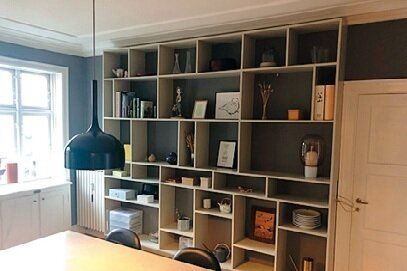 デンマーク人は自分たちで家や家具に手を入れるのが当たり前。花絵さんも最後の設置だけ大工さんに頼んで、壁一面の棚を夫とDIY!