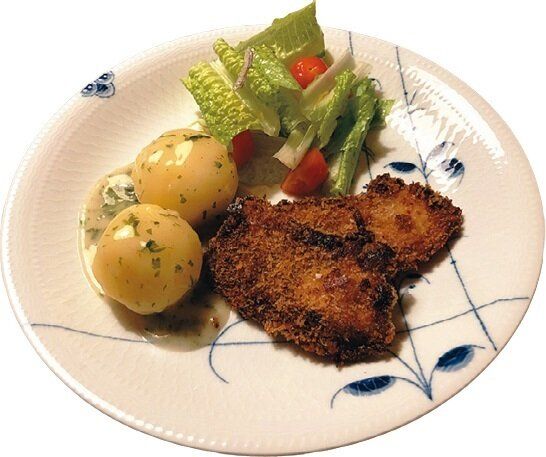 コペンハーゲンは港町ですが、魚介は海外に輸出されるので食卓では魚より肉が中心。写真は、豚バラ肉をカリカリに焼き、パセリソースを添えた伝統料理。