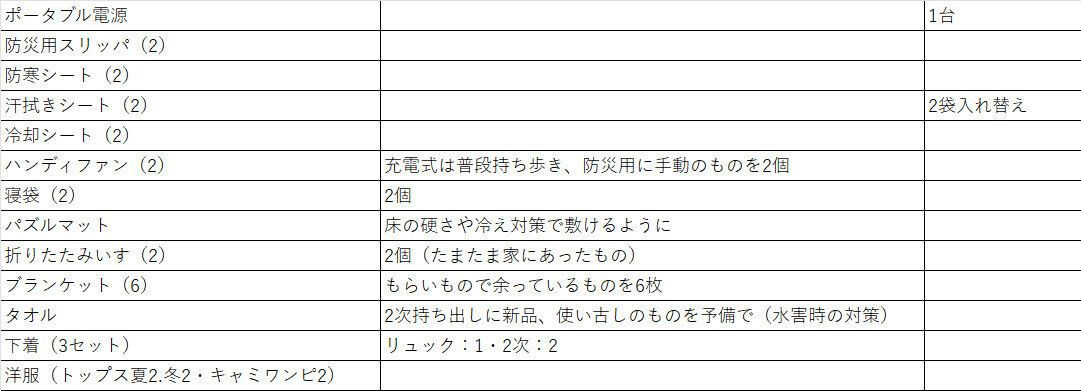 自分が必要だと思うものは追加したり、これはもっと少なくてよいと思うものは量を減らしたり、アレンジして自分たちなりのリストをつくるのがベスト。