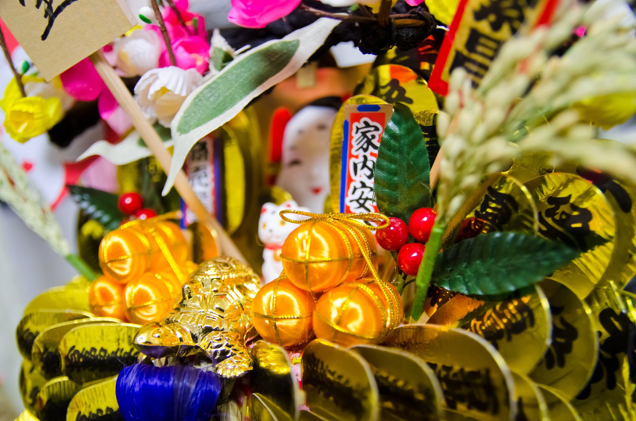 秋の収穫を願って江戸時代に始められたお祭りですが、開運招福や商売繁盛を願うお祭りとして定着しました。酉の市では縁起熊手の屋台がたくさん並びます。毎年一回りずつ大きくしていくと幸運をかき集めることができるといわれているので、初めて購入する際は小さめなサイズにしましょう。