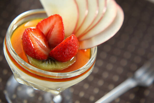 卵たっぷりのプリンに旬のいちごをのせれば、春のお祭りにぴったりのかわいらしいデザートに。