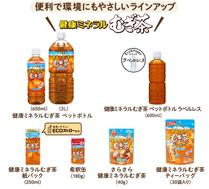 その他、「健康ミネラルむぎ茶」のラインアップはこちら!