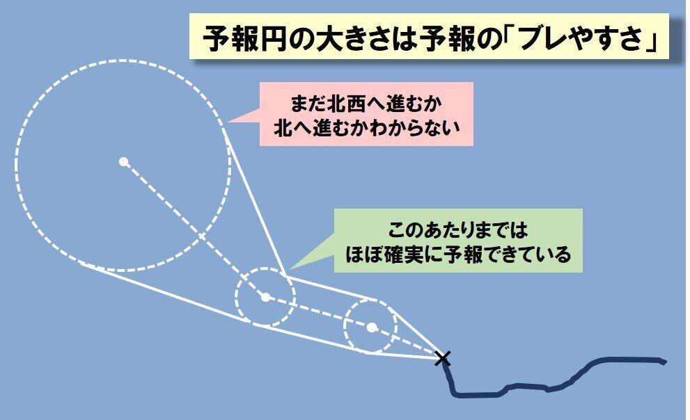 予報円の大きさが意味するのは、予報が大きくブレやすいということ。