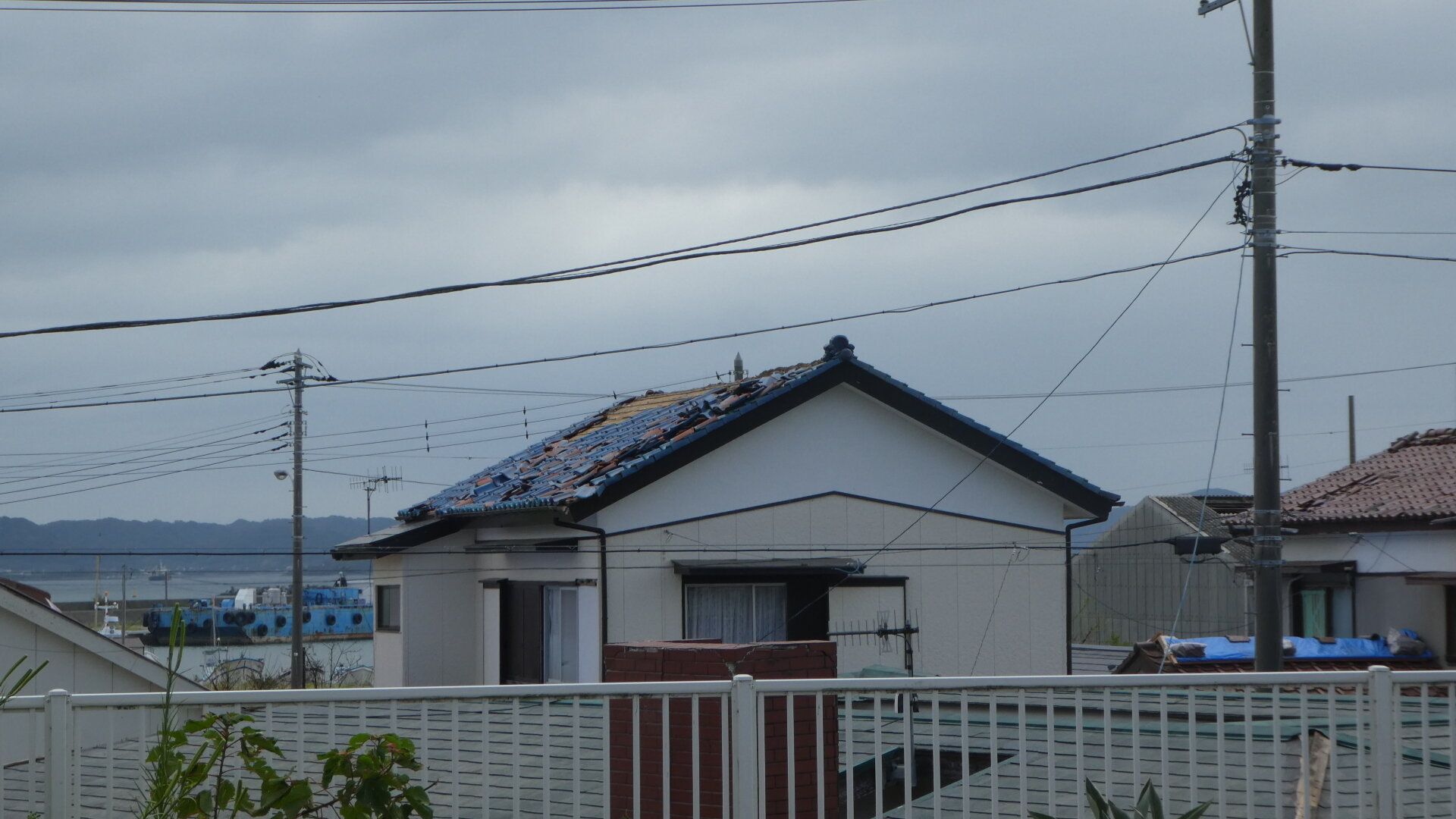 令和元年房総半島台風(2019年台風15号)による暴風で屋根瓦が飛ぶ被害を受けた家屋(千葉県内で撮影)