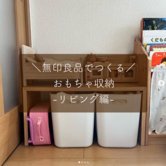 こちらはおもちゃの収納に無印良品のアイテムを活用している例です。大きめのボックスはおもちゃの収納にぴったり!ポイポイ収納できちゃうから、お片付けも楽ちんですね!