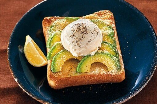 「バターを塗った食パンにアボカドをのせ、パルメザンチーズをふって焼きます。そこにバニラアイスをのせて黒こしょうをふるだけ。朝ごはんに♪」。