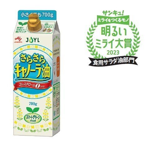 「JOYL『AJINOMOTO さらさら(R)キャノーラ油』700gスマートグリーンパック(R)」¥400(編集部調べ)/J-オイルミルズ