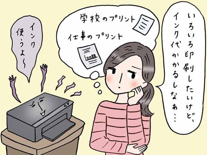 「子どもの学校行事に関するプリント、私やパパの仕事関係のプリントなど、たくさん印刷するとすぐにインクが切れて、新しいものを買わなくちゃいけないから、プリンターのインク代がかさんで大変なのよね……」