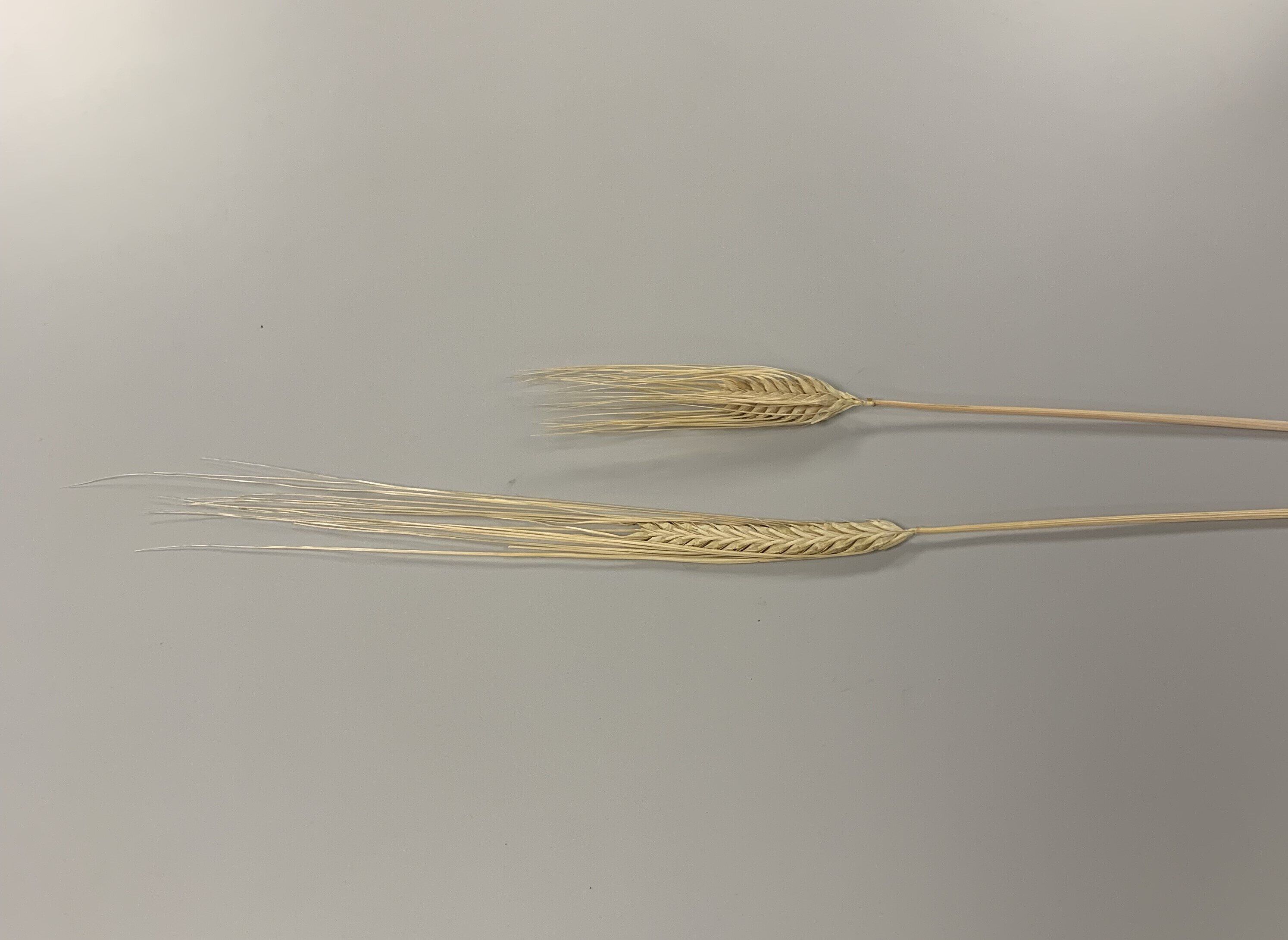 下が二条大麦。でんぷんが多く、甘い。ビールや焼酎づくりなどに用いられる。