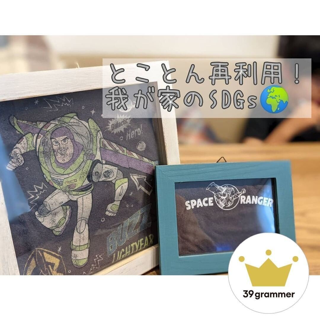 oshimin0039 さんが教えて下さったのは、お子さんがお気に入りだった服の絵の部分を切り取って額に飾るアイデア!