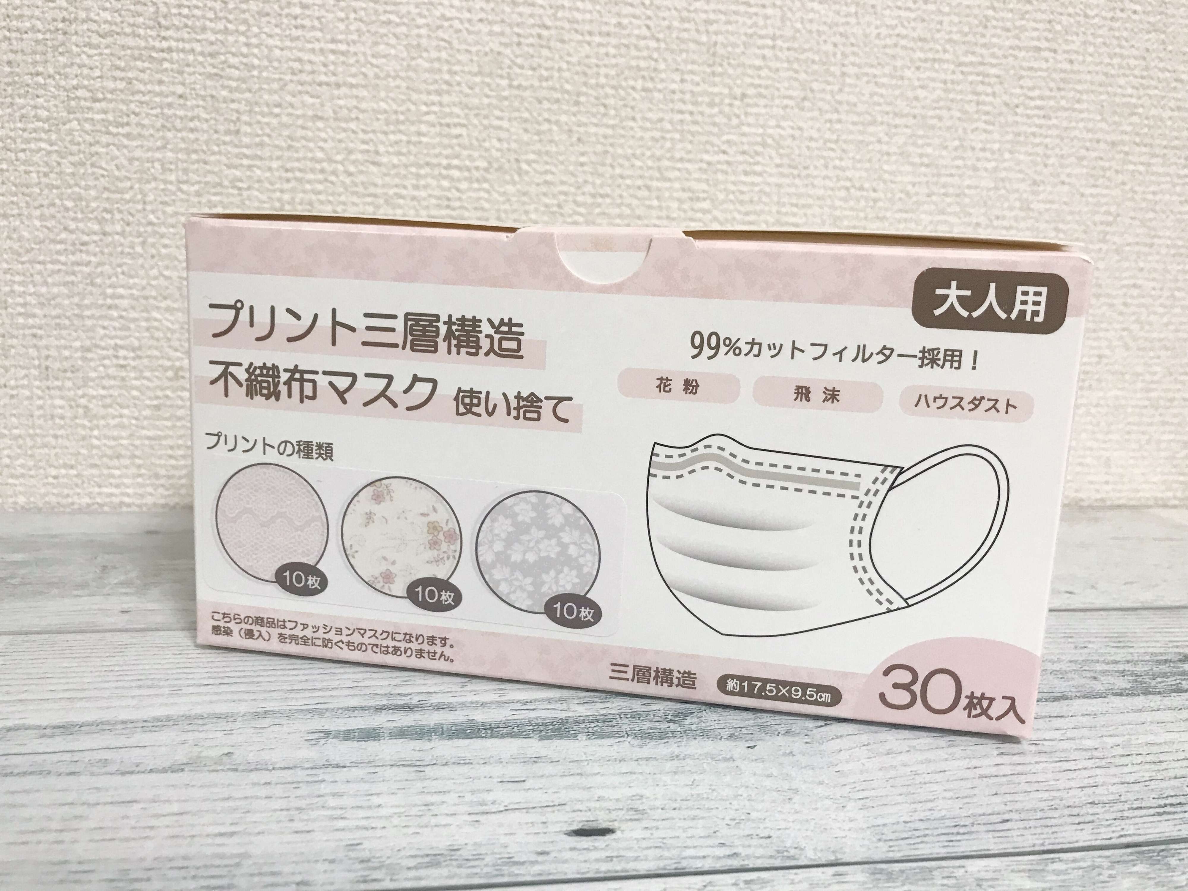 今回ご紹介するのが「プリント三層構造不織布マスク」(539円)。
