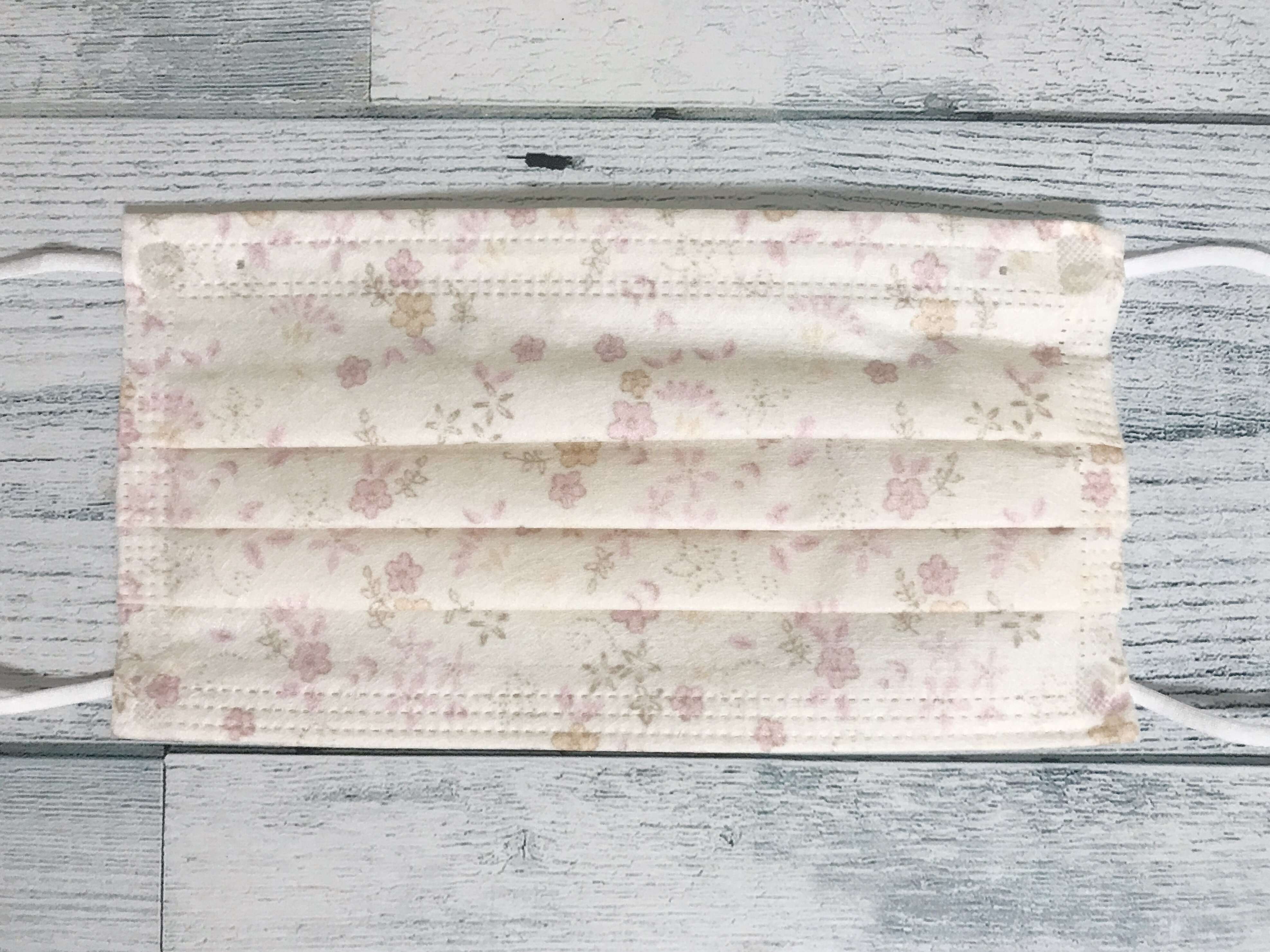 1種類めはガーリーな小花柄がプリントされている不織布マスクです。