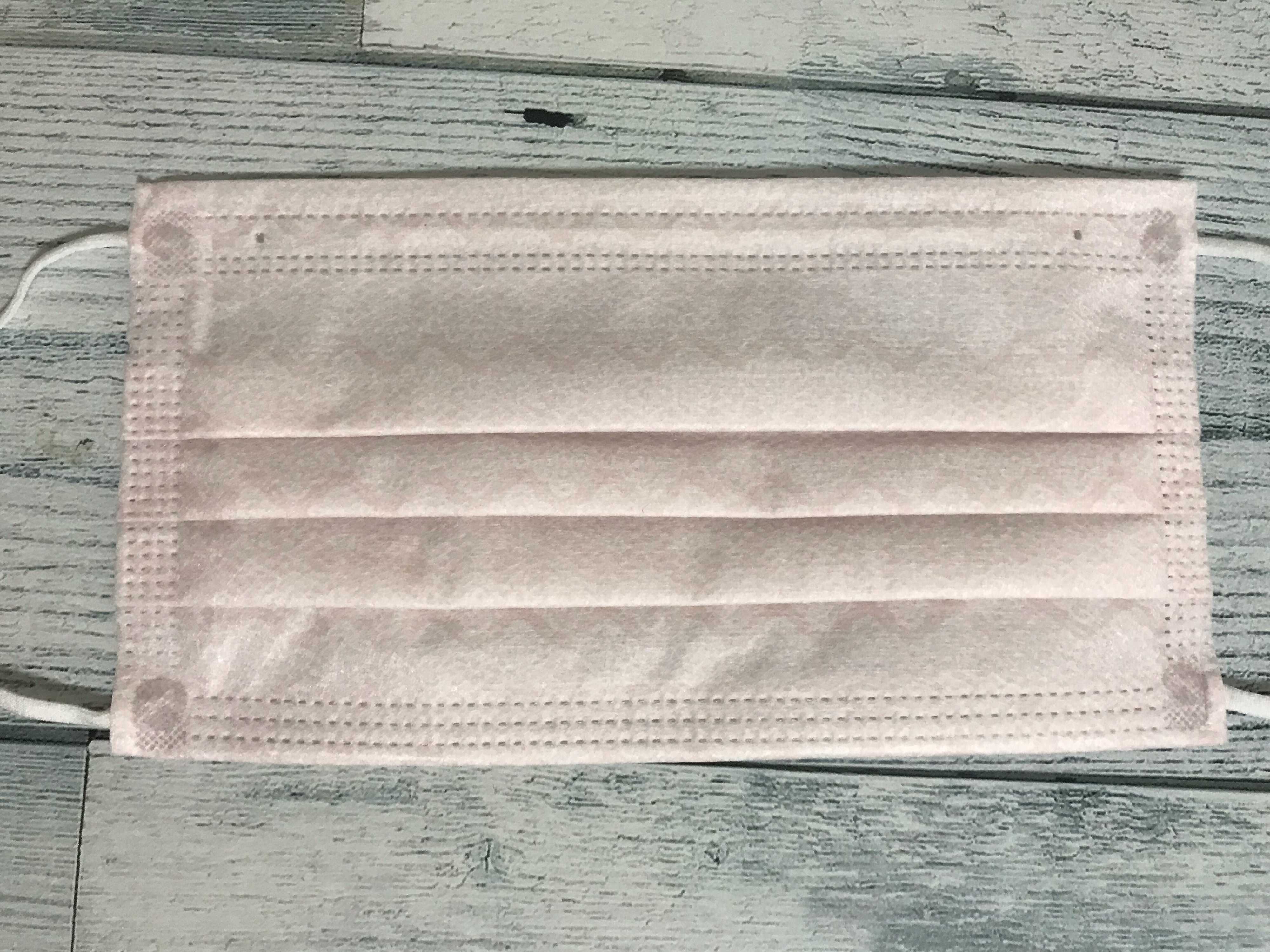3種類めは薄いピンクにうっすらホワイトのレース柄がプリントされたマスク。