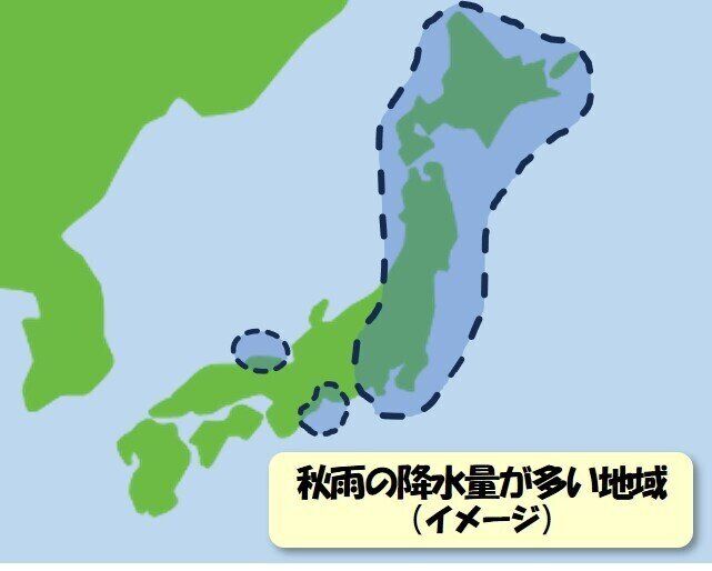 もちろん、例年と比べて実際に降水量が少なかった場合もあるとは思いますが、多くの場合は、そもそもその地域では梅雨より秋雨のほうが雨が多く降る傾向にあるのです。