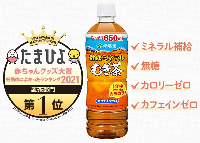 おいしく水分とミネラルを補給するのに最適なのが、伊藤園の「健康ミネラルむぎ茶」です。無糖でカロリーゼロ、カフェインゼロなので、赤ちゃんから大人まで家族みんなで一緒に飲むことができます。また、食品中の放射性物質の基準値については、厚生労働省が設けている乳児用規格適用食品と同等の管理を実施しているとあって、安心感も折り紙付き。