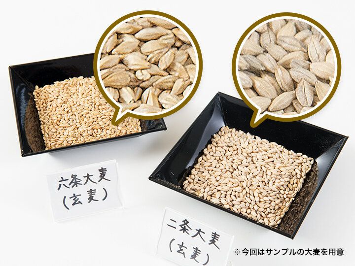 おいしさのポイントとなる「やかん品質」のカギとなるのは、原料と焙煎、そして抽出方法にあります。一般的な麦茶は六条大麦のみを使用するのに対し、健康ミネラルむぎ茶は、焙煎すると香ばしい香りが立ち上る六条大麦に加えて、熱が加わるとでんぷん質が糖化し甘みが出る二条大麦を採用。個性が違う2種類の大麦を使用することで、あのおいしい味わいが作られているのです。