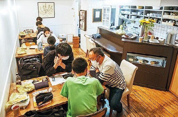 毎週金曜日の夜に閉店後のカフェを借り、中学生3人に大学生と社会人のボランティア5~6人がついて、勉強をみたり相談に乗るなど深いケアを行っています。「安心して過ごせる場所があって、自分としっかり向き合ってくれるひとができると、子どもの自尊感情は上がります。集中力がついて成績が伸びるだけでなく、笑顔が増えたり問題行動が減ったりと、さまざまな変化が起こります」。