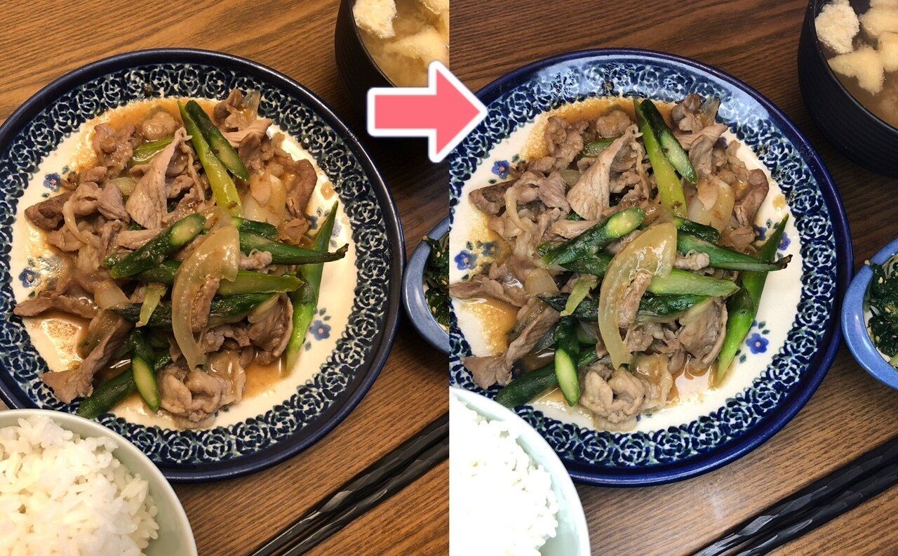 実はこの日はまだ日が沈みきってはいなかった為、さほど部屋が暗くはなかったのですが、それでも結構な違いがあるなと思いました。日没後に料理を撮影する時にはかなり使えると思います。