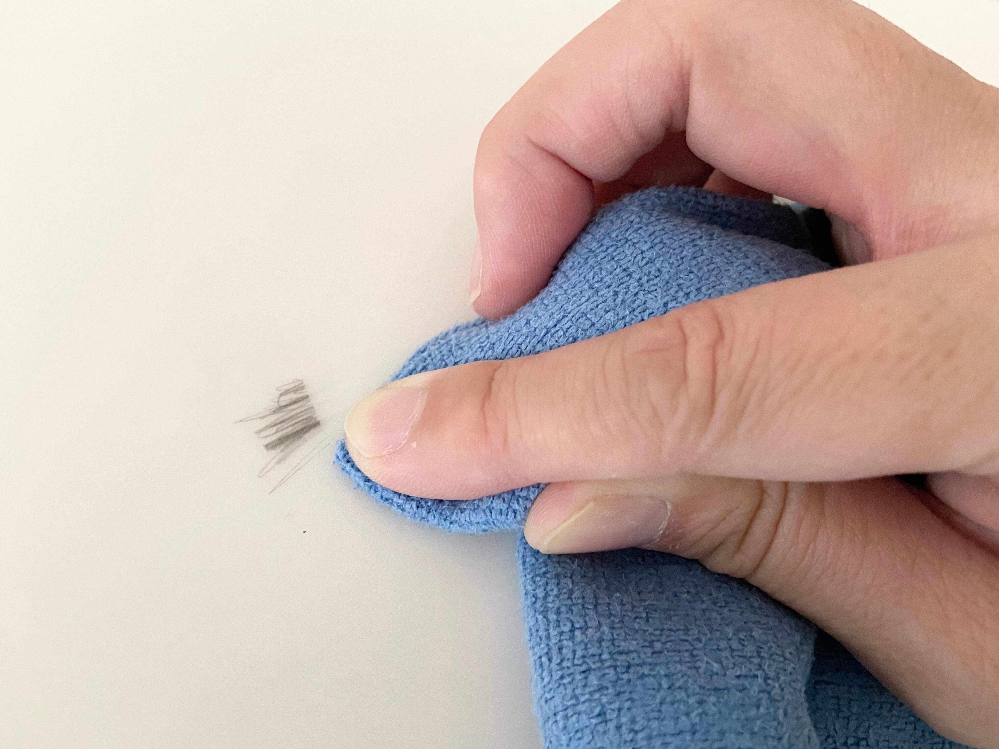 私がこのクロスが大好きな理由の1つが、洗剤なしで汚れが拭きとれてしまうという楽ちんさ。子どもがいると、いつの間にかテーブルだけでなく、キッチンカウンターや壁紙にも鉛筆汚れや正体不明の黒い汚れが付いていたりすることもありますよね。そんな時に大活躍なのがこのクロス!超極細繊維なので対象物にキズをつけることなく洗剤なしでスルッと汚れが取れます。