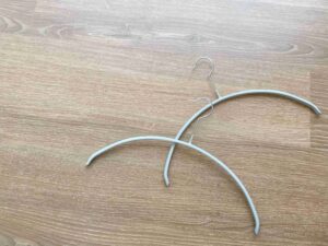 持ち手に付いている面ファスナーを外して吊るせるタイプ。私はS字フックを使って吊るして収納しています。コンパクトなので全く場所をとりません。アイロンをかける場所からなるべく近くに収納することでさらに家事楽、オススメです。