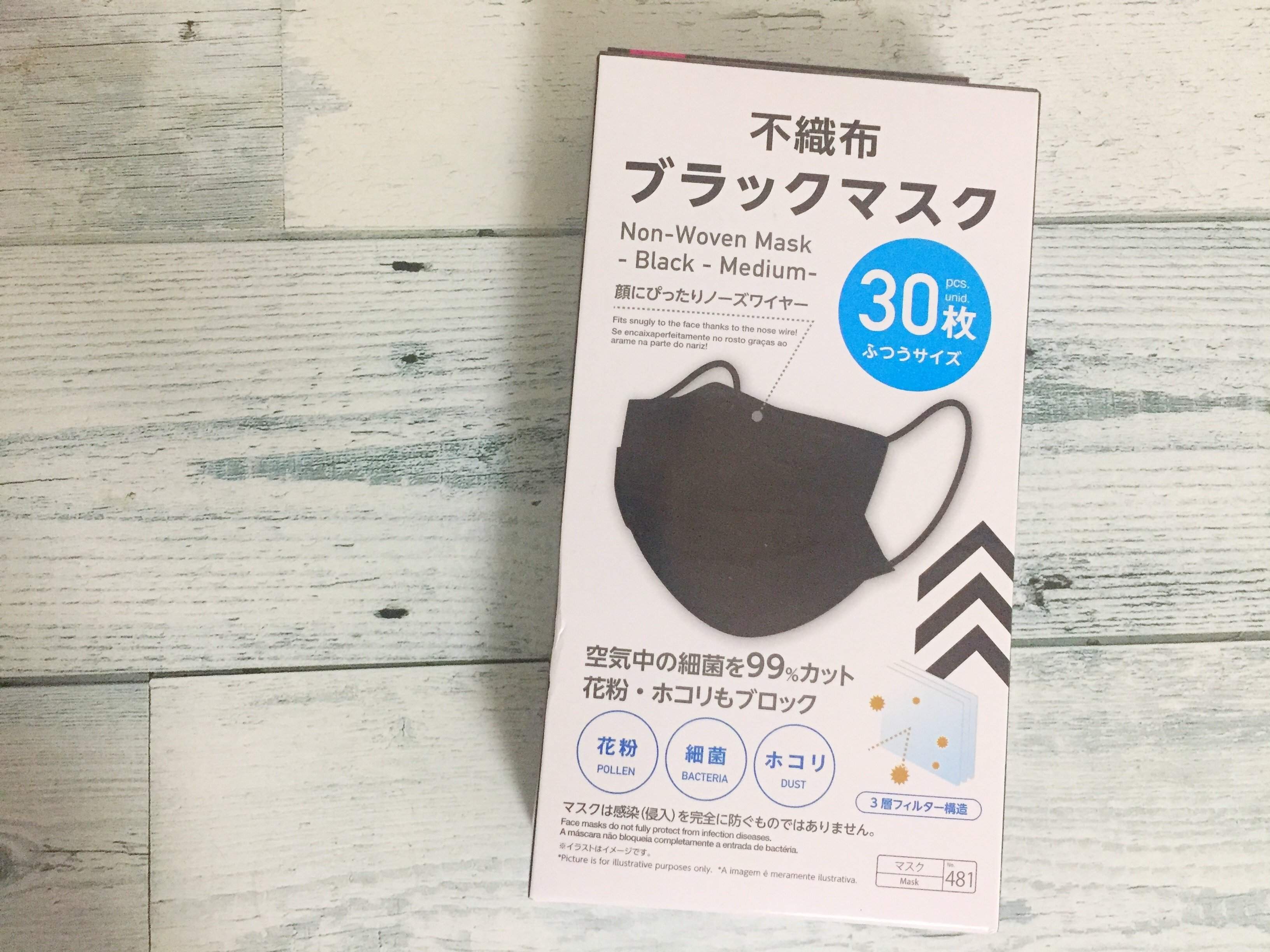 今回ご紹介するのが「不織布ブラックマスク 30枚 普通サイズ」(110円)。