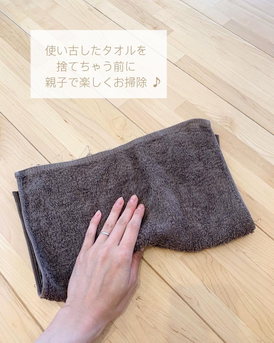 古タオルを破いて雑巾にするところから、続いてのお掃除まで、遊びの延長でお子さんを上手にお手伝いに誘われているのがすばらしい!