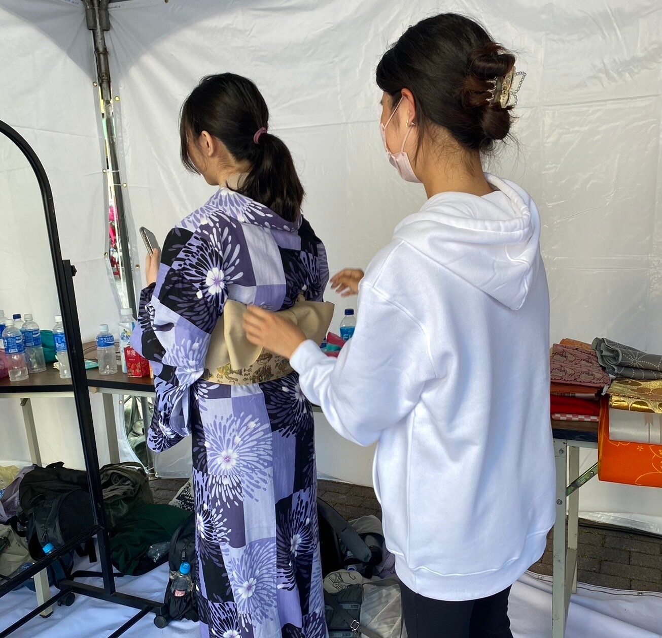 毎年、3月の第2土日あたりで行われているイベントだそうです。今年は偶然に、3月11日がイベント当日にあたったそうです。とても感慨深いですね。イベント内容は、東北訪問の様子の報告会、日系幼稚園の和太鼓の発表と、日本人学校のダンス部さんによる演技、防災関連の読み聞かせ、東北から寄付された浴衣の着付け体験、東日本大震災被災地や台湾の被災地への訪問報告展示など、スタッフによる「花は咲く」の合唱、絵灯篭への点灯式などが行われていました。