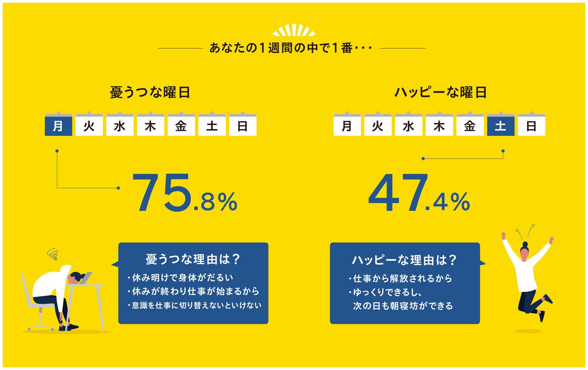 75.8%の人が週でいちばん憂うつなのは「月曜日」だと感じている