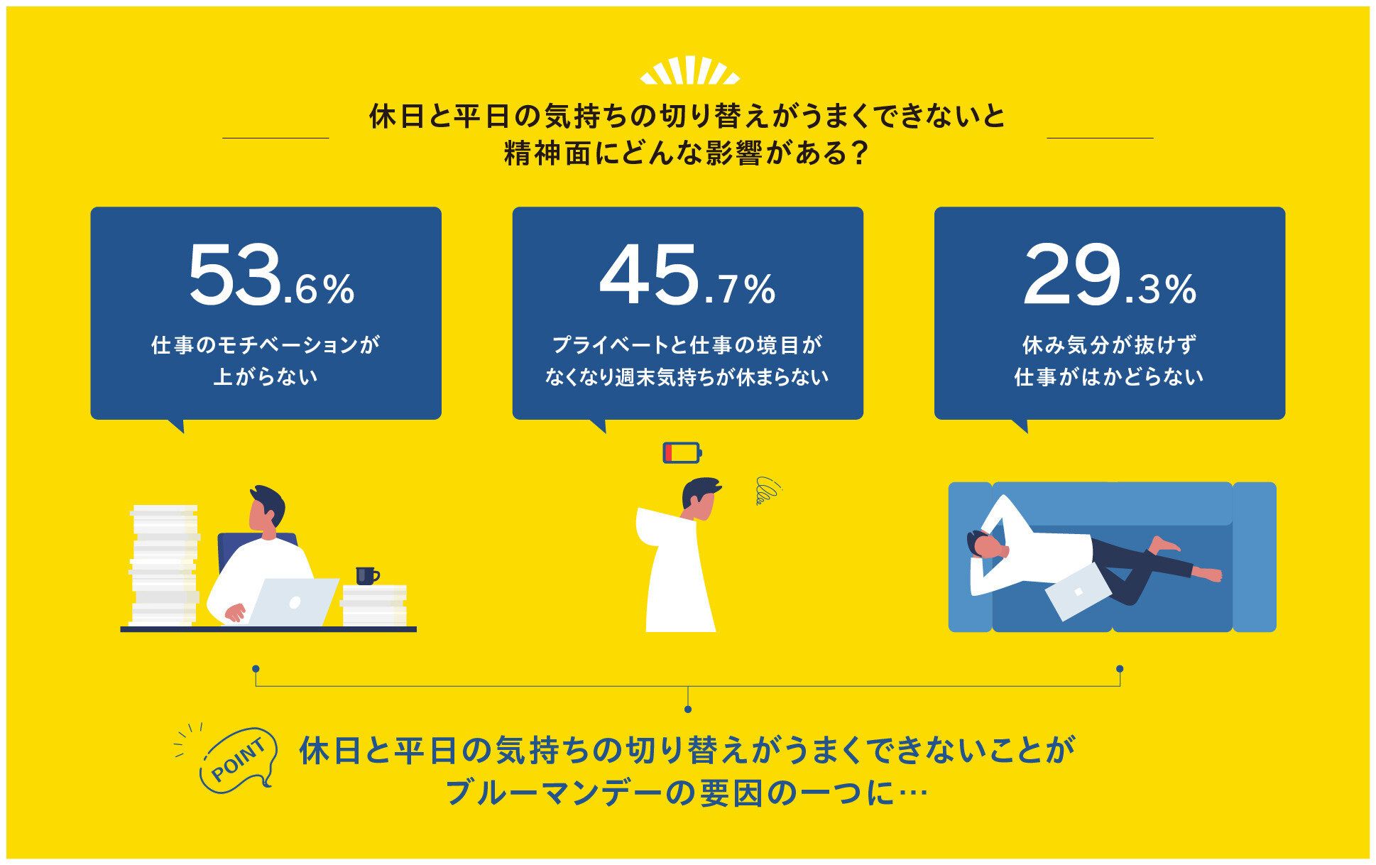 月曜日を憂うつだと感じるのは「休日から平日へ気持ちの切り替えがうまくいかない」という理由が大きいようです※。