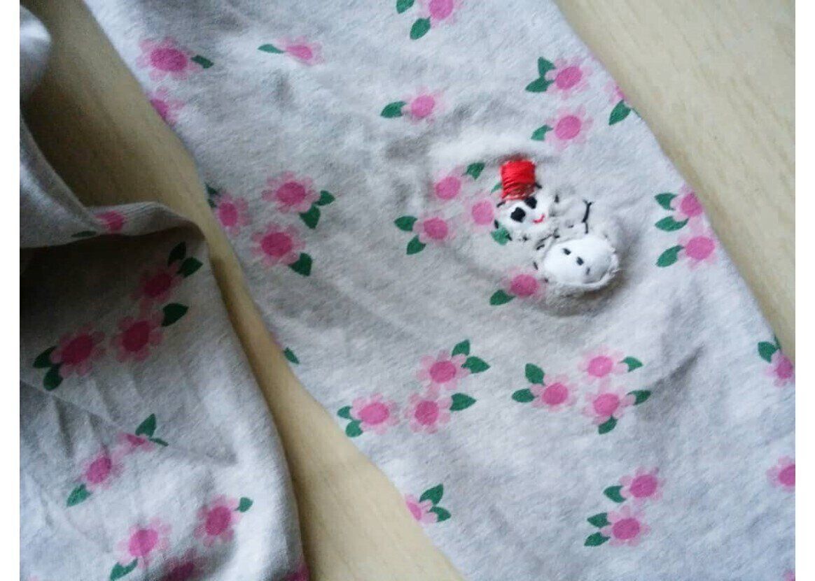 サンキュ!STYLEでは danngo さんの名でご執筆中の @kitunedanngo さんがお題投稿してくださったのは、穴の開いたズボンに施した雪だるまのアップリケ♪