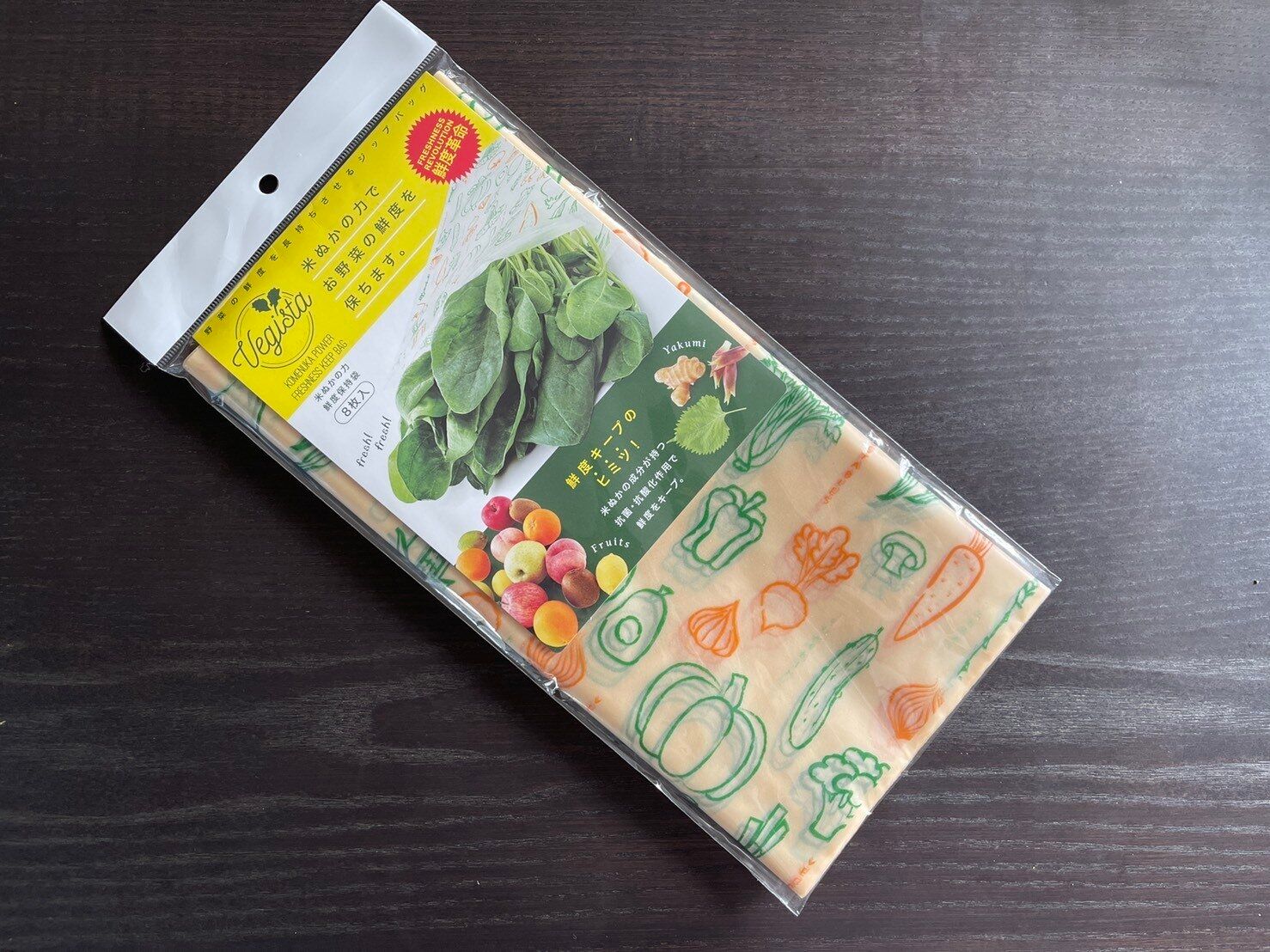 この保存袋には米ぬかに含まれる「フェルラ酸」が含まれていて、野菜の鮮度を保ってくれます。