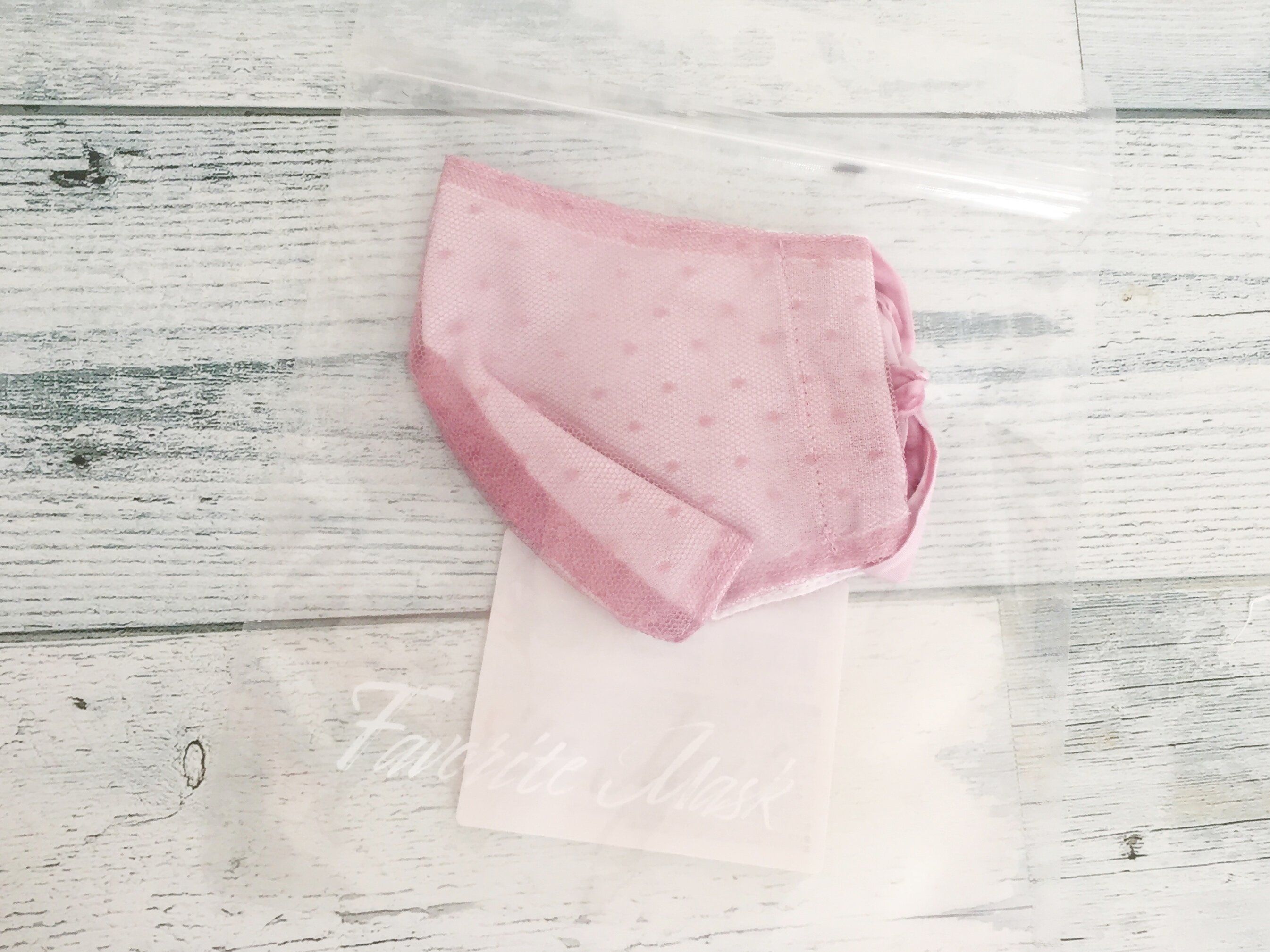デザインが数種類あり迷ったのですが、筆者はピンクのチュールがかわいいファッションマスクをチョイスしました。